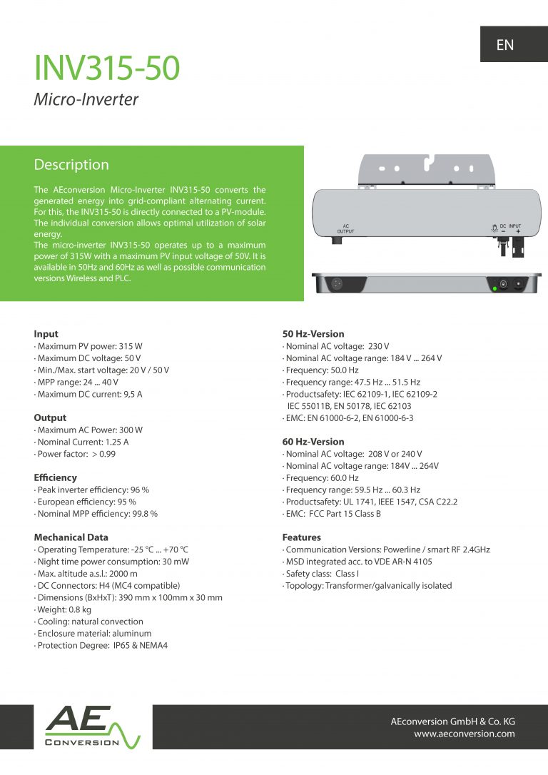 ไมโครอินเวอร์เตอร์ AEconversion รุ่น INV-315