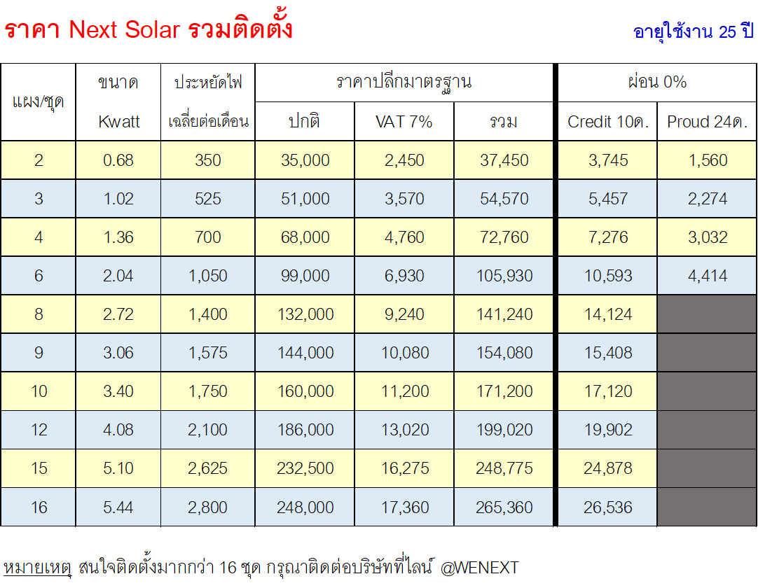 ราคา NextSolar รวมการติดตั้งพร้อมใช้งานได้ทันที